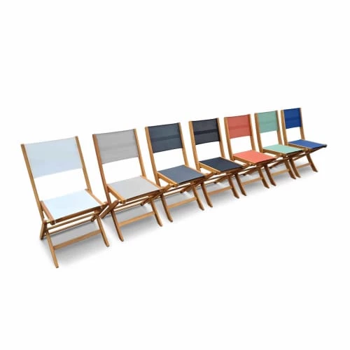 Les + produitChaises pliables, encombrement réduit,Mix textilène et bois exotique,Bois dur déjà huilé !