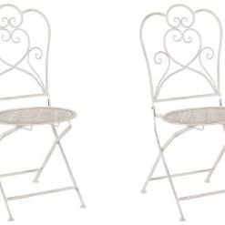 Sièges d’extérieur. Profitez pleinement de votre terrasse ou jardin grâce à ces chaises d’une nuance classique de beige et blanc cassé. D’inspiration provençale et rustique, elles offrent un espace de confort et ajoutent beaucoup d’élégance à tout décor de balcon. Faciles à ranger et pliantes, ces chaises charmantes au style bistrot sont à la fois pratiques et décoratives. Faites à partir de matières de haute qualité, solides et durables, elles ont été conçues pour vous servir de longues années.Détails: Type de produit: Chaise de jardin Style: Traditionnel Couleur principale: Beige Nuance: Beige clair Type de matière: Métal Matière principale: Métal Matière du piétement: Métal Matière de l`assise: Métal Accoudoirs: Non Finition: Revêtu de poudre Pliable: Oui Empilable: Non Dimensions: Profondeur: 48 cm Hauteur du siège: 45 cm Largeur: 44 cm Hauteur: 92 cm Surface d`assise: 40×40 cm Poids: 10 kg Charge admise: 120 kg L`offre inclue: 2 x Chaise Caractéristiques clés: Style élégant, Combinaison idéale des couleurs et matières, Style chic, Approprié pour un usage extérieur, Hydrofuge, facile à entretenir, Empilable, pratique pour avoir un espace supplémentaire, Matériaux légers, facilement transportables Informations d`assemblage: Ne nécessite pas d’assemblage Informations supplémentaires: Attention ! Ne pas ouvrir l’emballage avec un objet pointu ou coupant qui risquerait d’endommager le produit., L’effet d’usure, l’aspect vieilli ou taché de ce produit sont intentionnels et ne peuvent pas être considérés comme défauts de fabrication. Texte sur la résistance: La résistance légère à l’eau vous permet d’utiliser librement l’article à l’extérieur et de le garder à l’extérieur pendant les pluies légères et dans des conditions humides. Cependant, il doit être conservé à l’intérieur lorsqu’il n’est pas utilisé. L’exposition à long terme du meuble à l’humidité peut l’endommager. Résistance: Humidité Conseils de maintenance: