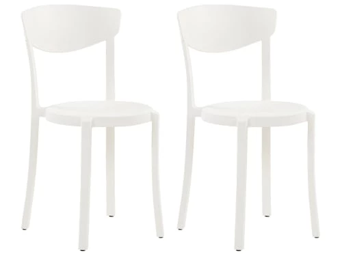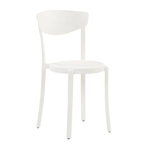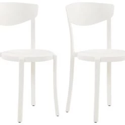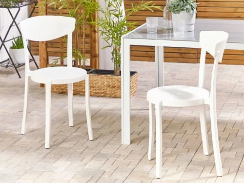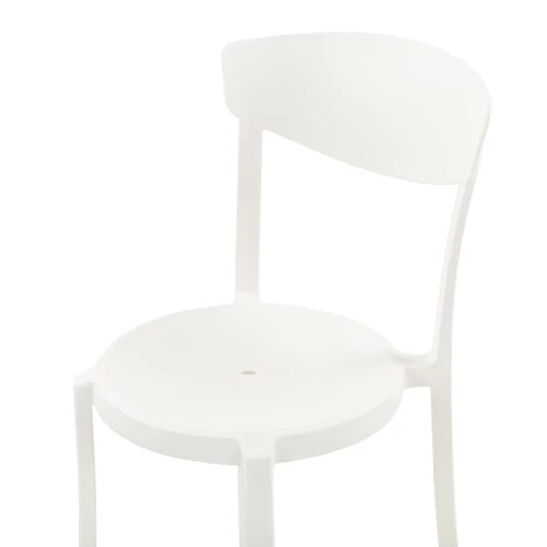 2 chaises empilables en plastique pour intérieur et extérieur. Ces chaises minimalistes vont à coup sûr devenir les meubles clés de votre extérieur et intérieur. Elles se caractérisent par une structure légère et sont empilables pour un rangement facile. On apprécie beaucoup leur polyvalence. Grâce au plastique résistant, elles feront face à l’humidité et le petit trou dans les sièges vous permettra d’évacuer tout excès d’eau en cas de pluie. Mais ces chaises peuvent aussi sublimer votre salle à manger intérieure, surtout si vous préférez le décor moderne ou scandinave. Détails: Type de produit: Chaise de salle à manger Style: Moderne Couleur principale: Blanc Type de matière: Plastique Matière principale: Matière synthétique Matière du piétement: Plastique Matière de l`assise: Plastique Accoudoirs: Non Finition: Mat Pliable: Non Empilable: Oui