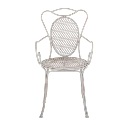 Sièges d’extérieur. Ce lot de 2 chaises de terrasse charmantes a été fabriqué à partir de matériaux de haute qualité, solides et durables. D’inspiration provençale et rustique, ces chaises conviennent parfaitement aux petits balcons ou jardins. L’aspect vieilli et la finition grise leur confèrent un trait romantique et chaleureux. De type bistrot, elles s’adapteront facilement à tous vos coussins et couvertures d’extérieur. Détails: Type de produit: Chaise de jardin Style: Traditionnel Couleur principale: Gris Nuance: Gris clair Type de matière: Métal Matière principale: Métal Matière du piétement: Métal Matière de l`assise: Métal Accoudoirs: Oui Finition: Revêtu de poudre Pliable: Non Empilable: Non Dimensions: Dimensions des accoudoirs: 20 cm Profondeur: 43 cm Hauteur du siège: 47 cm Largeur: 42 cm Hauteur: 94 cm Surface d`assise: 42×42 cm Poids: 9 kg Charge admise: 120 kg L`offre inclue: 2 x Chaise Caractéristiques clés: Design moderne et la qualité assurant la durabilité, Construction durable et stable, Approprié pour un usage extérieur, Matière anti-taches et hautement résistante à l’usure , Une conception solide et une excellente finition Informations d`assemblage: À assembler entièrement. 20 – 40 min Informations supplémentaires: L’effet d’usure, l’aspect vieilli ou taché de ce produit sont intentionnels et ne peuvent pas être considérés comme défauts de fabrication. Texte sur la résistance: La résistance légère à l’eau vous permet d’utiliser librement l’article à l’extérieur et de le garder à l’extérieur pendant les pluies légères et dans des conditions humides. Cependant, il doit être conservé à l’intérieur lorsqu’il n’est pas utilisé. L’exposition à long terme du meuble à l’humidité peut l’endommager. Résistance: Humidité Conseils de maintenance: