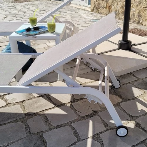 Mobili Rebecca Bains De Soleil Et Chaises Longues Bain De Soleil Avec Toit En Aluminium Et Pvc Blanc