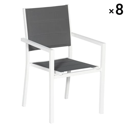 Happy Garden Chaises De Jardin Lot De 8 Chaises Rembourrées Gris En Aluminium Blanc