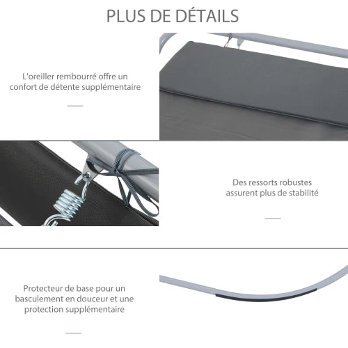 – Lit et tétière en textilène haute densité 580 g/m², respirant et anti-moisissure