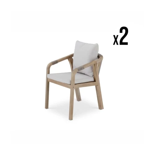 Les coussins d’assise et de dossier sont fabriqués en polyester beige imitant le lin. Le bois est certifié FSC, garantissant ainsi une gestion responsable des ressources forestières de la planète d’un point de vue environnemental, social et économique.