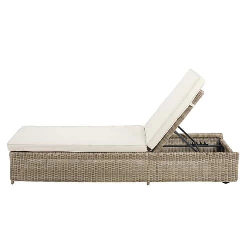 Le bain de soleil en résine tressée beige SARDAIGNE accompagné de son coussin écru est l’élément idéal pour meubler le bord de votre piscine ou installer un espace détente au sein de votre jardin. Ce bain de soleil élégant vous permettra de profiter de votre extérieur avec son dossier inclinable qui s’adaptera à vos envies. Le revêtement en résine tressée est résistant aux UV et ses coussins sont déhoussables pour une meilleure conservation dans le temps. Profitez de votre extérieur toute la journée en choisissant un parasol pour accompagner ce bain de soleil.