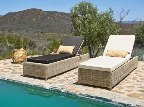 Envolez-vous pour la Méditerranée et posez vos valises dans une jolie maison de campagne en pierres apparentes. Ouvrez les volets colorés et découvrez, en contrebas, une terrasse parée de la gamme SARDAIGNE. Au programme: une collection de mobilier d’extérieur en résine tressée beige qui s’adapte à merveille à la nature environnante. Avec sa structure en aluminium traité époxy et son revêtement résistant aux UV, elle vous surprendra par sa solidité. Installez-vous confortablement sur le bain de soleil ou le salon d’extérieur et laissez-vous bercer par le chant des cigales.