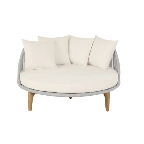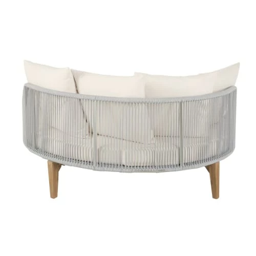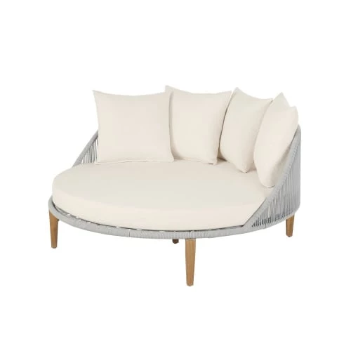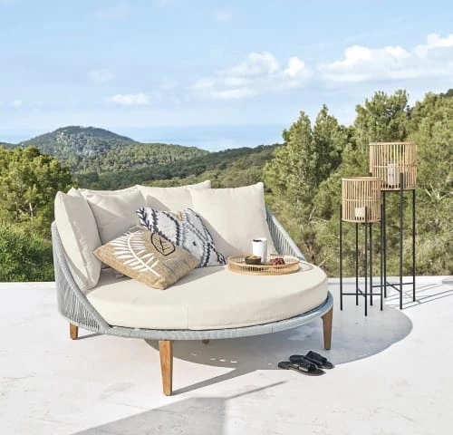 Pour votre extérieur, vous aimez l’ambiance épurée d’une belle maison d’architecte californienne? Imaginez comme ce bain de soleil rond en corde tressée grise et toile blanche VERA CRUZ y serait bien à sa place. Avec ses teintes neutres et sa forme circulaire inattendue, il contrastera parfaitement avec le bleu azur de la piscine tout en signant un design contemporain. Associez votre canapé de jardin en corde et toile à un bout de canapé au fini cimenté pour encore plus de modernité.