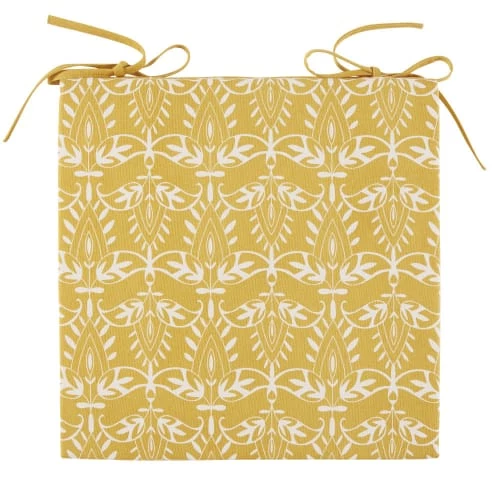 Maisons Du Monde Coussins Extérieur Galette De Chaise En Coton Jaune Motifs Graphiques Blancs