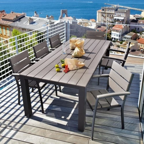 Envie de vivre en harmonie avec la nature ? Retrouvez les petits plaisirs de l’été avec le fauteuil de jardin en aluminium gris anthacite ESCALE. Sobre et structuré, ce fauteuil aluminium gris est doté de liteaux aspect bois résistants et très agréables au toucher. Le dossier de ce fauteuil gris est légèrement inclinée pour vous assurer une assise confortable. Un fauteuil dejardin qui se joint volontiers à la table à dîner grise ESCALE. Et maintenant ? Savourez les premiers rayons de soleil !