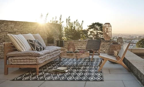 Harmonisez votre mobilier d’extérieur aux nuances naturelles qui l’entourent avec ce fauteuil de jardin en résine tressée et acacia massif NAIROBI. De faible hauteur, il se sentira parfaitement bien autour d’une table basse en bois ciré. Jouez avec les teintes sable chaudes en associant votre fauteuil de jardin à un tapis d’extérieur terracotta.