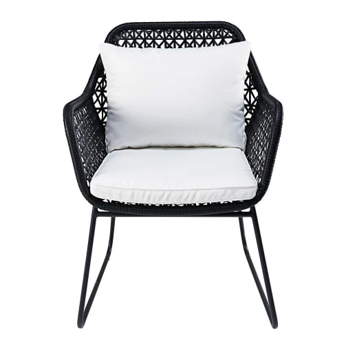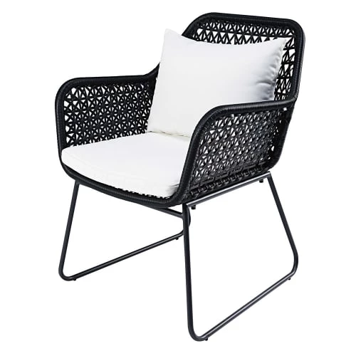 Fabriqué en aluminium traité époxy et résine polyéthylène, ce fauteuil de jardin moderne résiste parfaitement en extérieur.