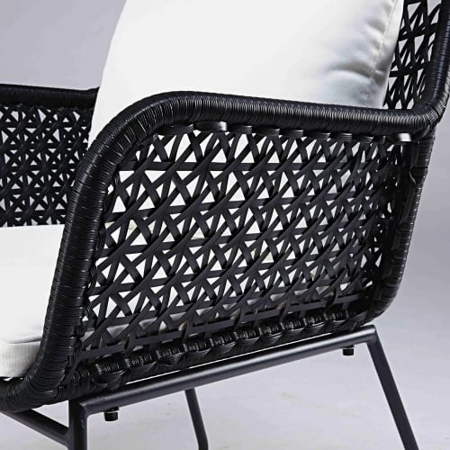 Revêtement : résine tressée polyethylène résistante aux UV, coloris noir, fibre tressée à la main, maille plate à l’aspect rainuré