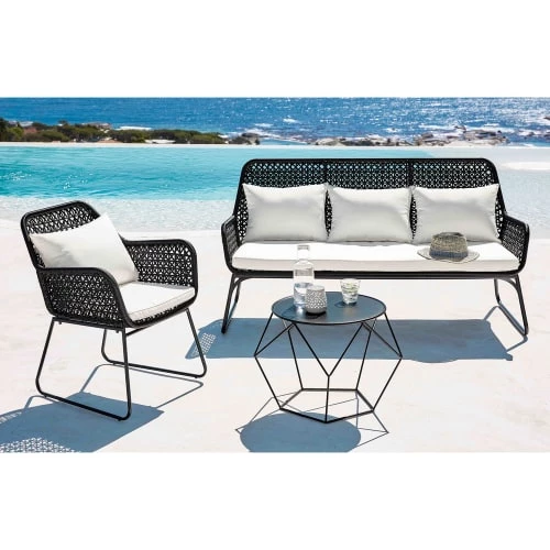 Pour un salon de jardin raffiné, osez la tendance monochrome en choisissant uncanapé de jardin dans les mêmes tons.