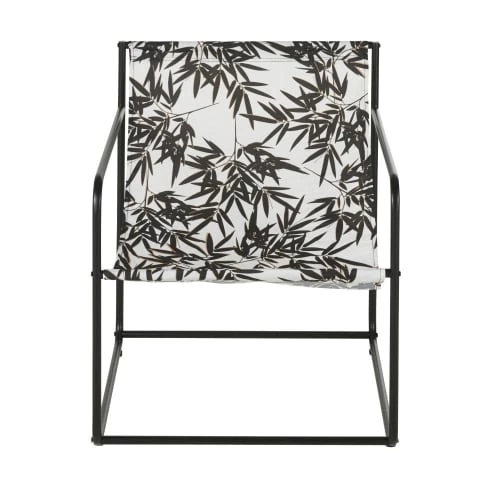 Assise : toile 100% polyester 365g/m² enduit PVC, imprimé feuillage noir et écru, résistant à l’eau et aux UV (grade 4)