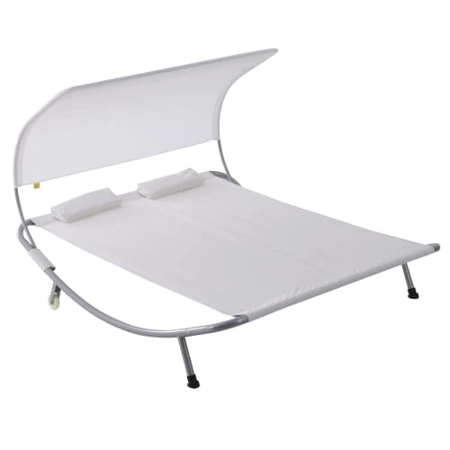– Bain de soleil lit de jardin 2 places design contemporain aux lignes arrondies harmonieuses