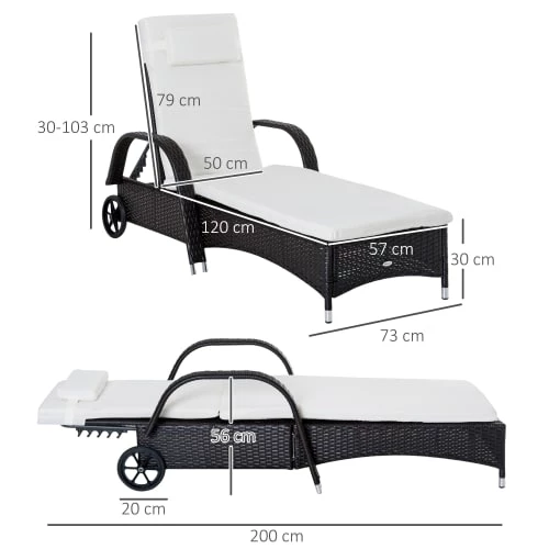 – Dim. bain de soleil : 200L x 73l x 56-103H cm