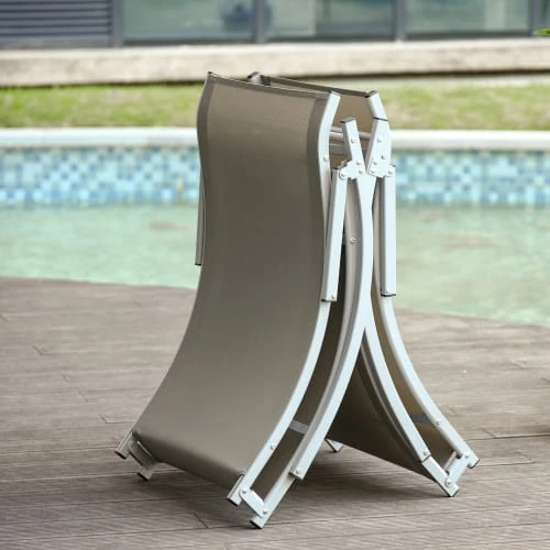 – Transats pliables, compacts, légers (poids net de 4,3 Kg pour chacun) : vous pourrez facilement les déplacer dans votre jardin, les emmener en vacances puis les ranger