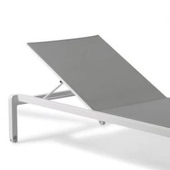 Gescova Bains De Soleil Et Chaises Longues Bain De Soleil à Roulettes En Alu Blanc Et Textilène Gris