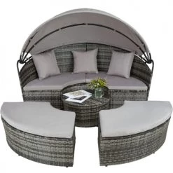 Tectake Bains De Soleil Et Chaises Longues Bain De Soleil OCEANE 5 Positions Cadre En Aluminium Gris
