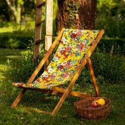 Vent De Bohème Bains De Soleil Et Chaises Longues Chilienne Pliante En Acacia Et Imprimé Fleuri Doré