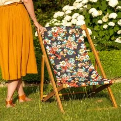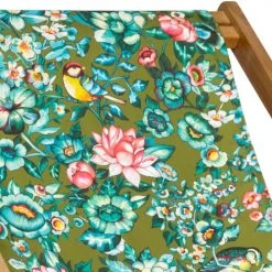 Vent De Bohème Bains De Soleil Et Chaises Longues Chilienne Pliante En Acacia Et Imprimé Fleuri Kaki