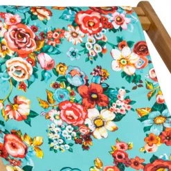 Vent De Bohème Bains De Soleil Et Chaises Longues Chilienne Pliante En Acacia Et Imprimé Fleuri Bleu