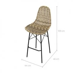 Entretien : Pour nettoyer la surface de la chaise de bar en résine tressée, utiliser une éponge imbibée d’eau tiède et de savon de Marseille.