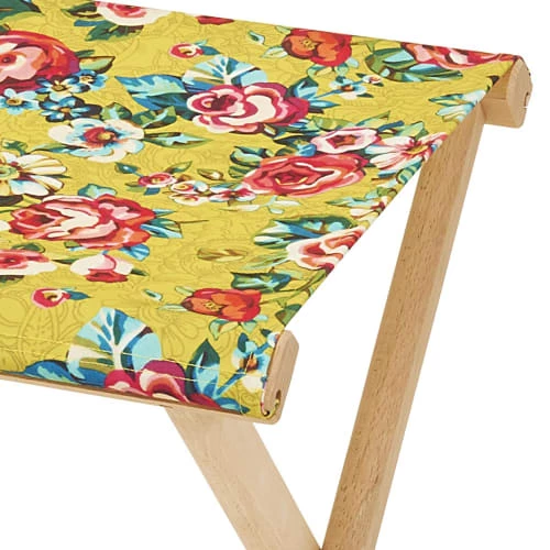 matière : Monture en bois d’acacia. Teinte Teck. Charge max. 80 kg. Fibre 100% polyester imprimée. Déperlant, anti-UV.Toile amovible, lavable en machine à 30 C.