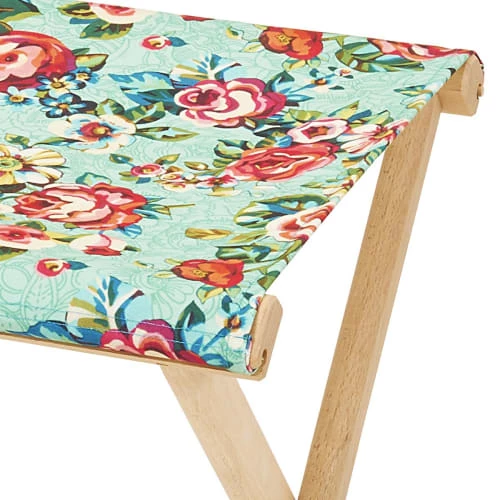 matière : Monture en bois d’acacia. Teinte Teck. Charge max. 80 kg. Fibre 100% polyester imprimée. Déperlant, anti-UV.Toile amovible, lavable en machine à 30 C.